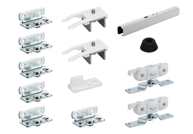Opis - Zestaw Helm 73 MK L-80 H 109 do drewnianych drzwi przesuwnych, szyna EV1 2100 mm (montaż ścienny kątownikami, skrzydło do 80 kg)