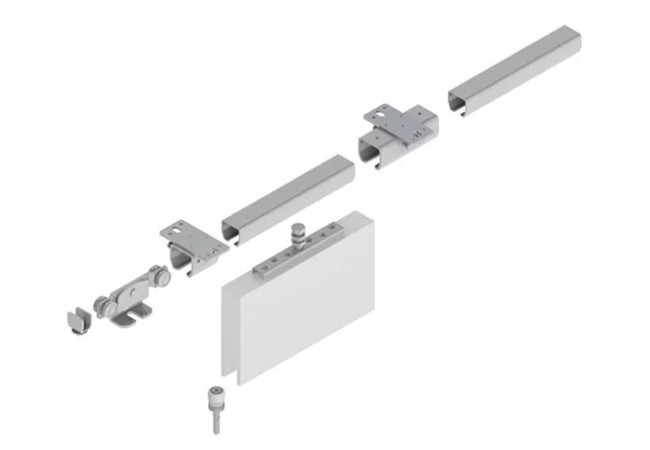 Zestaw Helm SP 400 D do bram podwieszanych, montaż sufitowy, skrzydło max. 400 kg (profil 2x2 m, łącznik, uchwyt, wózek, uchwyt wózka, stoper, rolka)