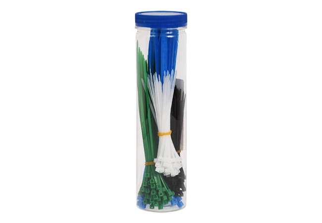 Opis - Zestaw opasek zaciskowych (łącznie 200 szt.) - 2,5x100mm, 2,5x150mm, 3,5x200mm (biały, czarny, zielony, niebieski)