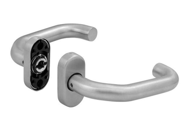 Klamka drzwiowa w kształcie "U" Wilka z owalną rozetą przeznaczona do drzwi na drogach ewakuacyjnych i ppoż. Klamka jest wygięta, co może ułatwiać jej użytkowanie. W dodatku kształt przyczynia się do zwiększenia jej bezpieczeństwa, praktycznie uniemożliwiając zahaczenie się o nią np. ubraniem. Produkt jest wyposażony w sprężynę cofającą, co oznacza, że klamka wraca automatycznie do swojego pierwotnego położenia po użyciu. Klamka bezpieczna jest wykonana z matowej stali nierdzewnej, co sprawia, że jest trwała i odporna na korozję. Jest to szczególnie ważne, gdy klamka jest stosowana na zewnątrz budynku lub w warunkach, gdzie występuje wilgoć. Produkt jest łatwy w utrzymaniu i nie wymaga regularnego smarowania czy konserwacji. Stosowana jako okucie dla normy EN 179, jak również jako przeciwokucie przy zastosowaniu okuć według normy EN 1125.
